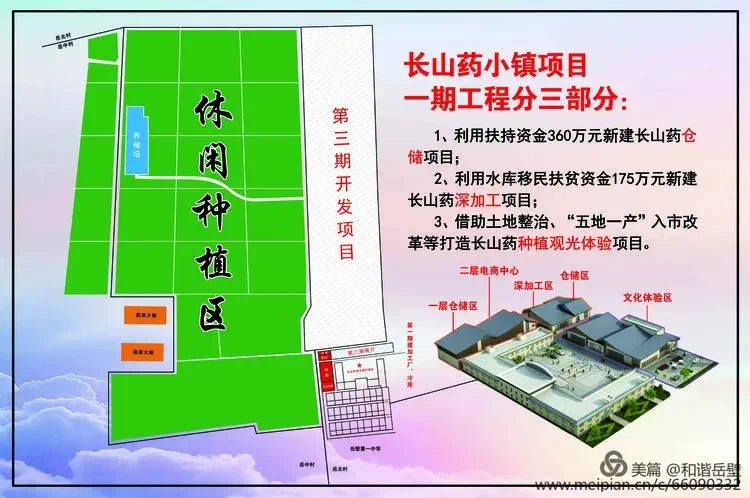 长山药小镇文化体验项目方向为旅游+销售,利用现有集体建设用地,新建集吃、住、行、游、购、娱为一体的长山药文化体验馆。
