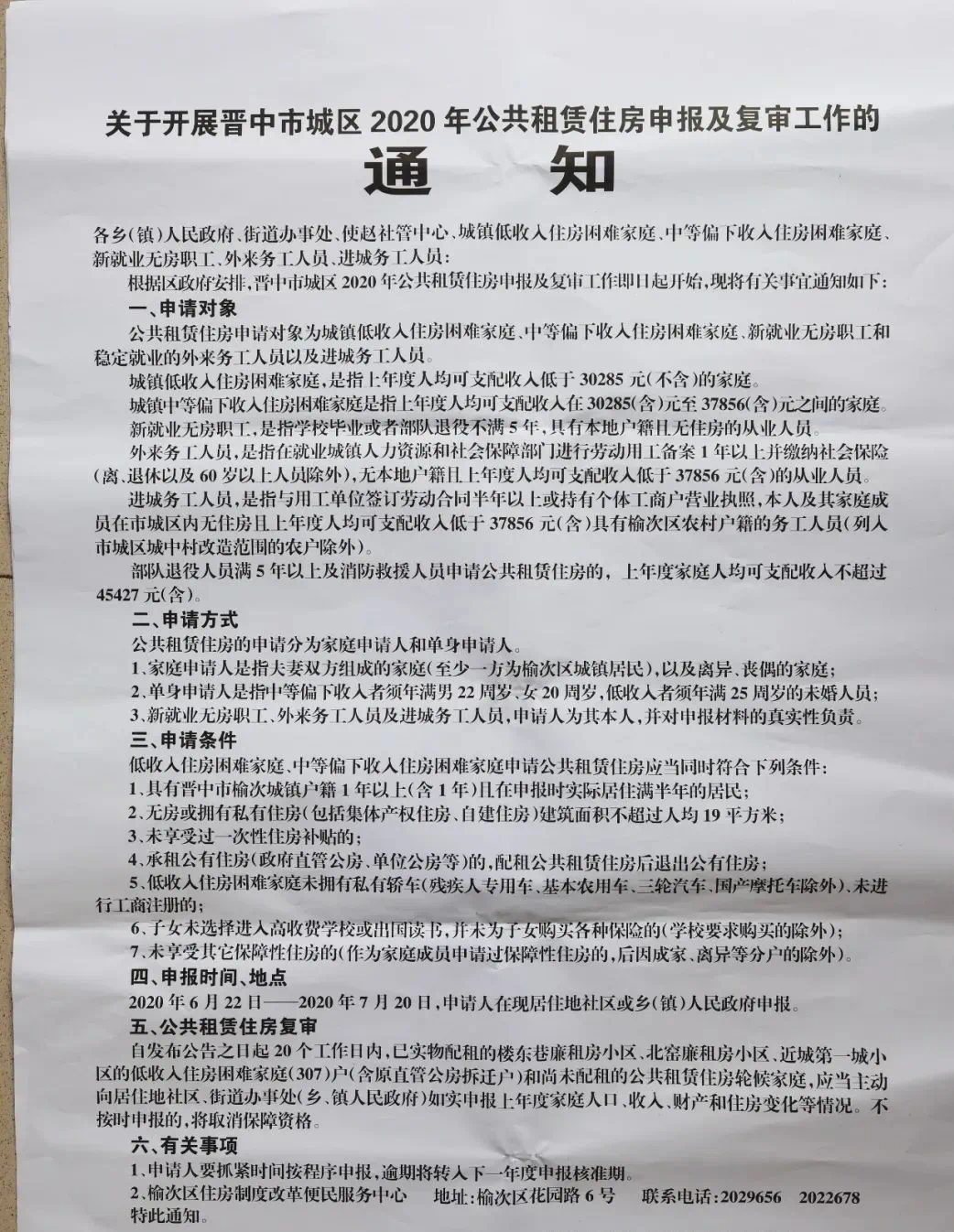 晋中市城区2020年公共租赁住房申报及复审工作通知