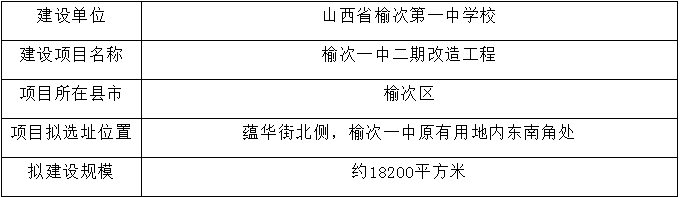 榆次一中二期改造工程建设项目用地预审与选址意见书批前公示