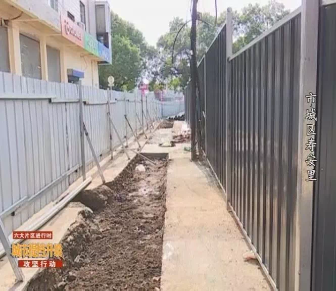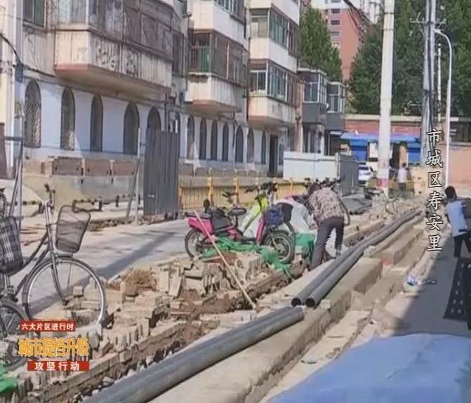 烈日炎炎,记者在市城区寿安里巷看到,工程施工人员正在加班加点对这里开展管线下地作业。